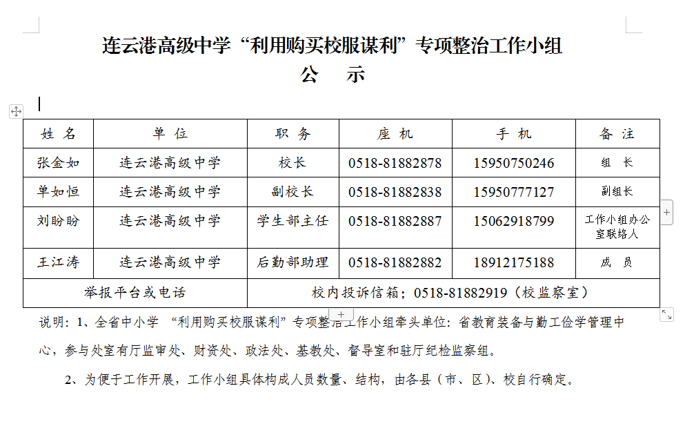 联系电话:0518-81882819 学校邮编:222042 邮箱 lyggaozhong@163.com