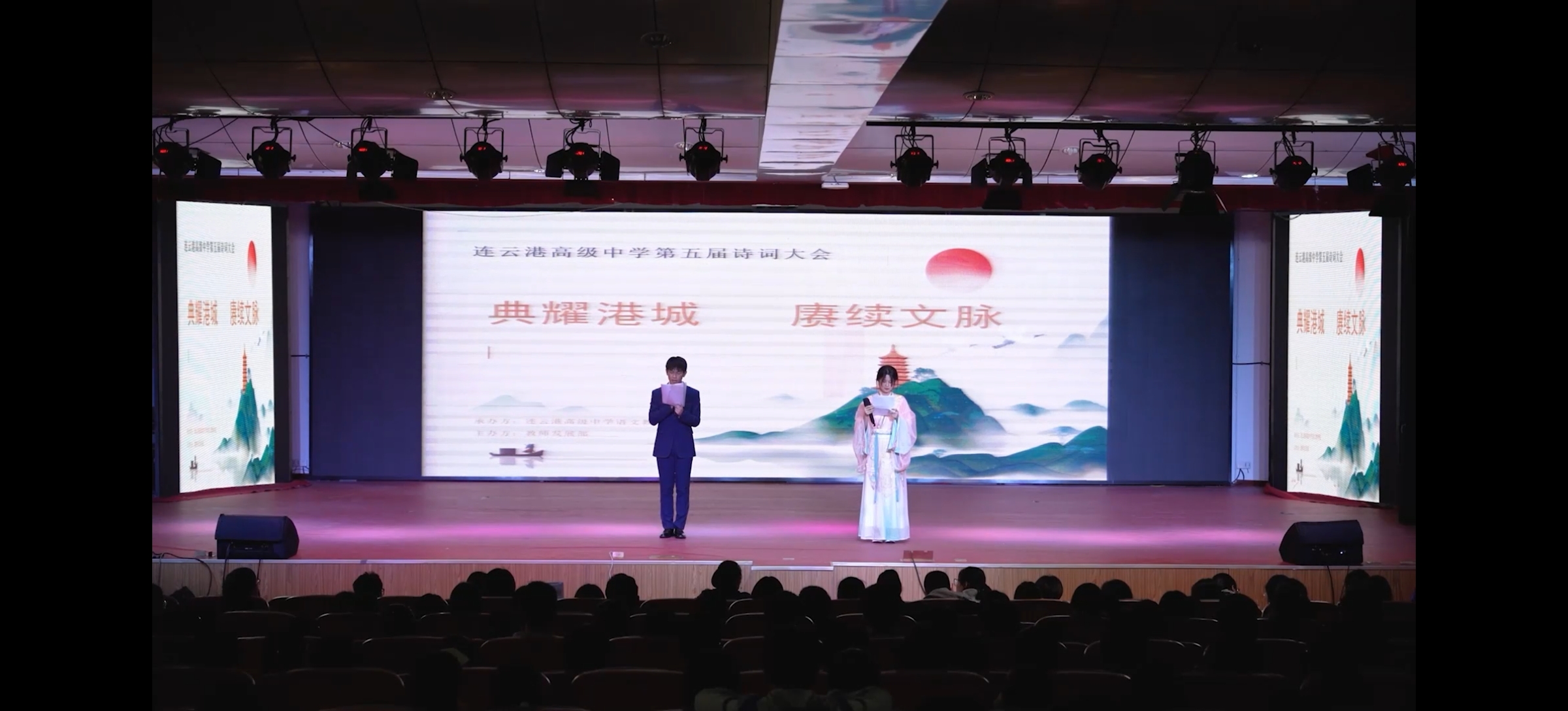 5月15日下午,我校在行政楼报告厅召开了第五届“典耀港城 赓续文脉”诗词大会,此次诗词大会是我校2025年读书节系列活动之一。此次大会由