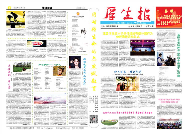 联系电话:0518-81882819 学校邮编:222042 邮箱 lyggaozhong@163.com