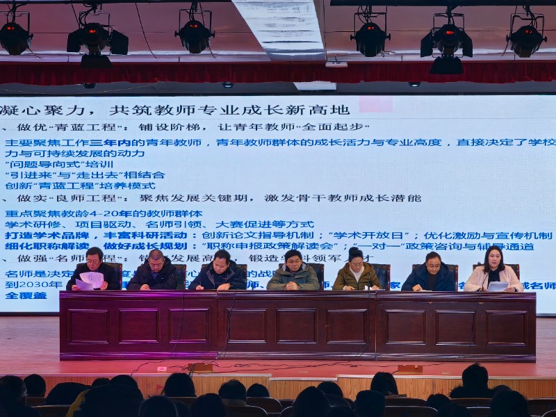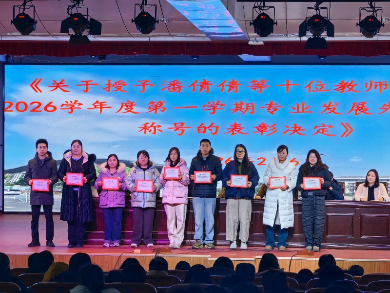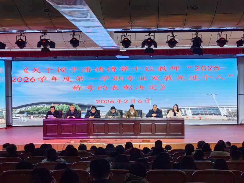 会议伊始,宫素平同志宣读了2025-2026学年第一学期期末考评一等奖获得者、2025年度考核优秀人员、民主评议党员“优秀”人员、2025年度宣传工作先进个人、2025-2026学年度第一学期专业发展先进个人以及“优秀班主任等多项表彰决定。在热烈的掌声中,这些荣誉既是对获奖者辛勤付出与卓越成绩的肯定,也激励着全体教职工见贤思齐、争先创优。