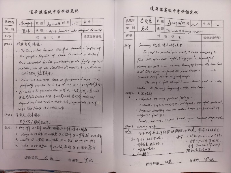 然而,在检查过程中,也发现部分教师在教案撰写、听课记录、作业批改方面存在以下不足: