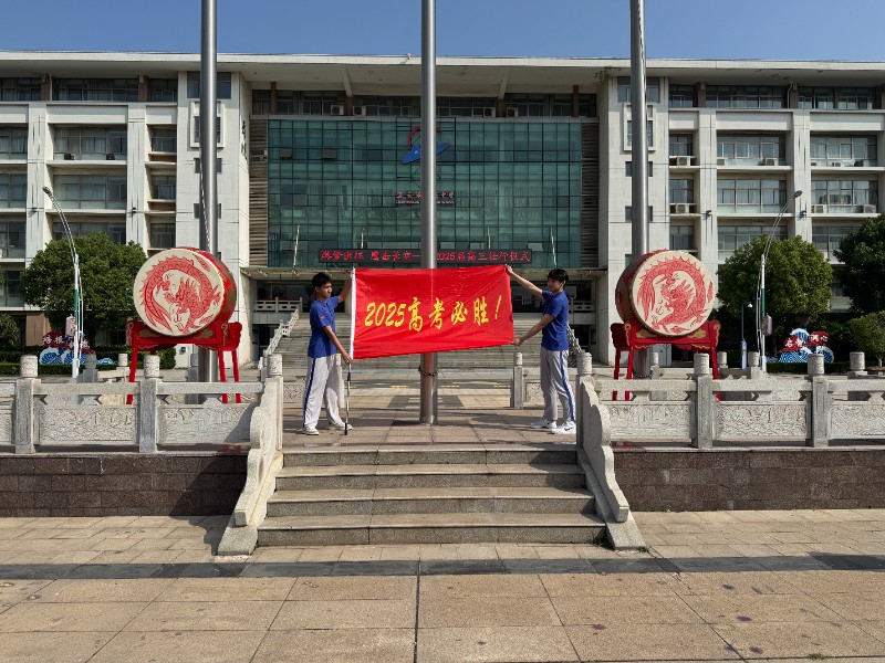 旗帜交织,信念传承。张金如校长庄重地将一面写着“2025高考必胜!”的旗帜递交给高三年级学生代表。旗帜在风中作响,那鲜艳的红色仿佛是燃烧的火焰,象征着全校师生对高考胜利的信念。这不仅是一面旗帜的交接,更是一种信念的传承,它激励着高三学子们勇往直前,为梦想而战。
