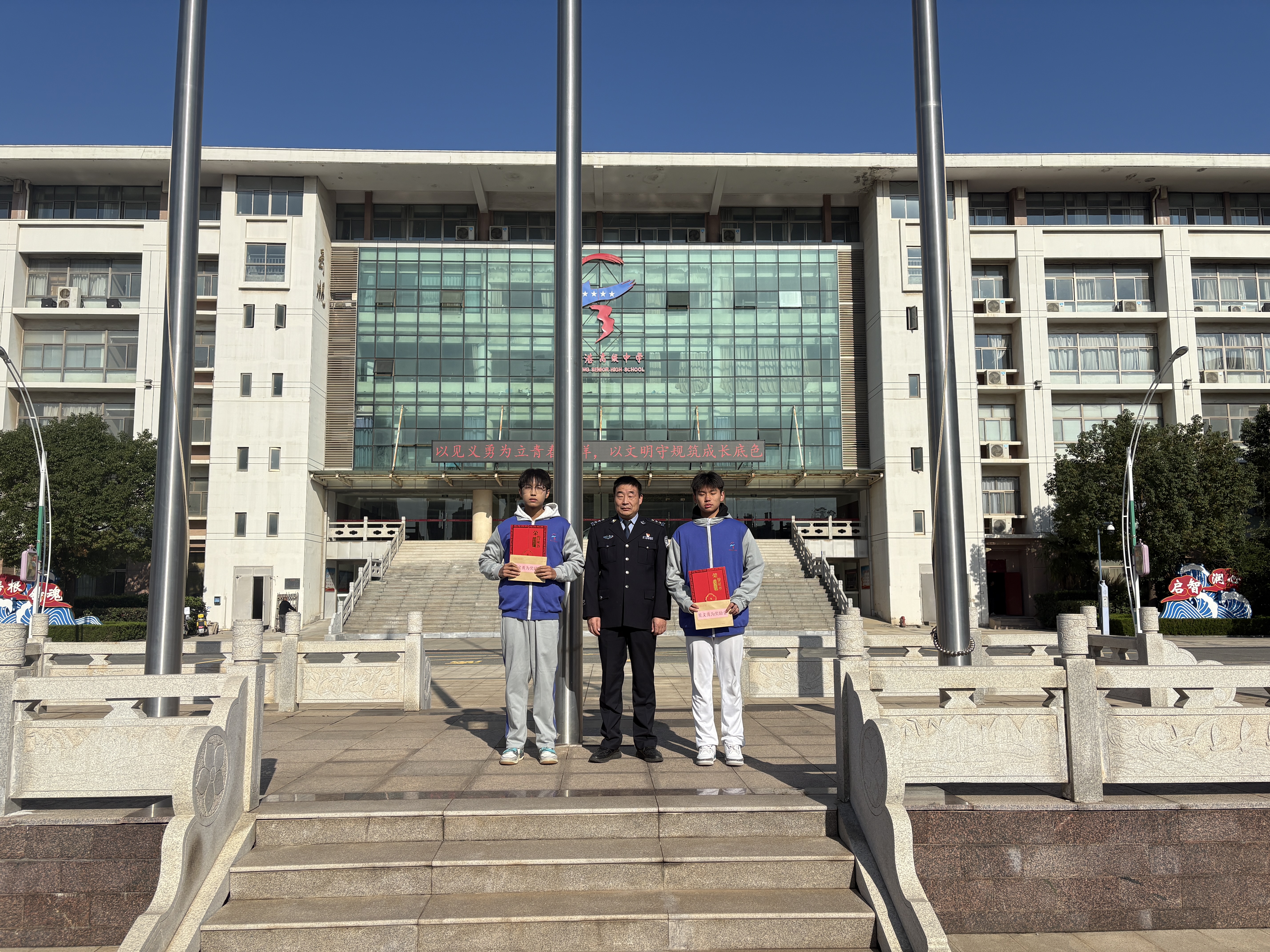 9月6日,二位同学结伴外出时,救了一名发生车祸的男子,在几日后,学校收到受伤者家属的电话和锦旗,二位同学不假思索的善意,不是“碰巧做了件好事”,而是刻在心里的责任感;开发区见义勇为基金会为他们颁发奖励金,也不是给“偶然的勇敢”颁奖,而是给所有“愿意为他人伸手、为正义驻足”的青春,投下认可的目光。同学们,“见义勇为”从不是电视剧里的英雄壮举,对我们而言,它可能是看到同学被误解时,敢说一句公道话;是发现校园角落有安全隐患时,主动报告老师;是像二位同学这样,在他人需要时,不做“低头路过的人”,做“伸手帮忙的人”。这两位同学用行动告诉我们:榜样从不在远方,就在身边:在愿意“多管一点闲事”的热心里,在敢为正确的事站出来的勇气里。