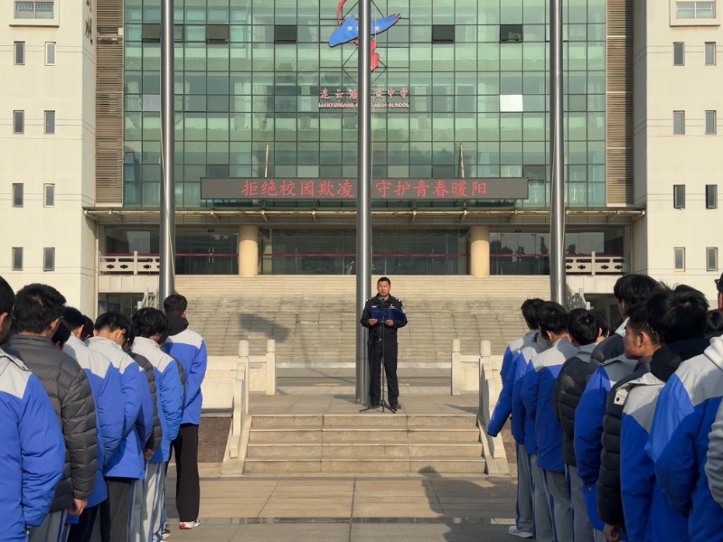 大家早上好!今天,站在国旗下,作为学校法治副校长,我想和大家聊聊“校园欺凌”这个严肃又关乎每一位同学成长的话题。校园本是知识滋养、青春绽放的净土,可校园欺凌的阴影若悄然滋生,便会伤害同学身心、破坏校园秩序。今天,我们以法治为盾,以责任为肩,共同筑牢校园安全防线,对校园欺凌坚决说“不”。