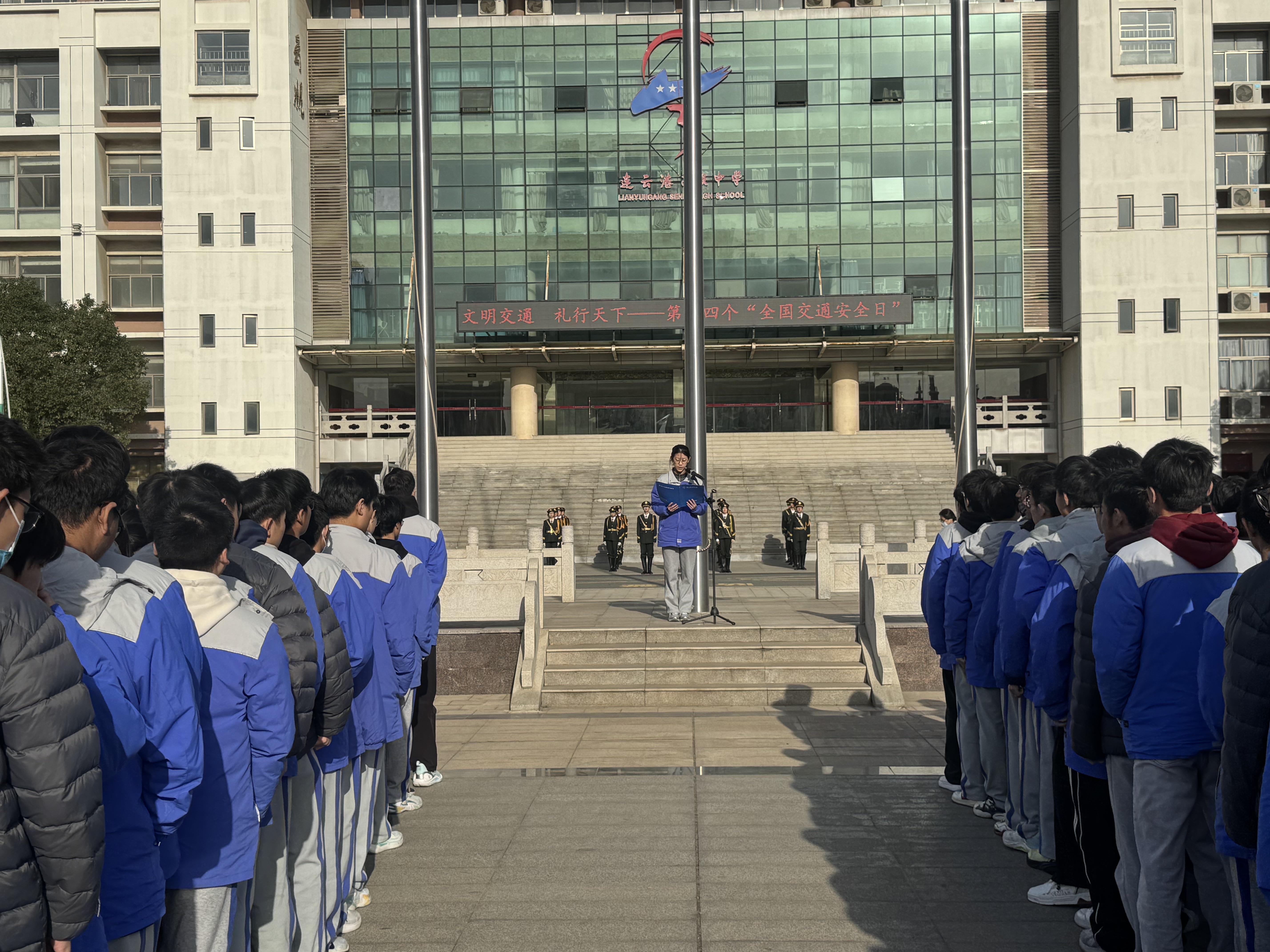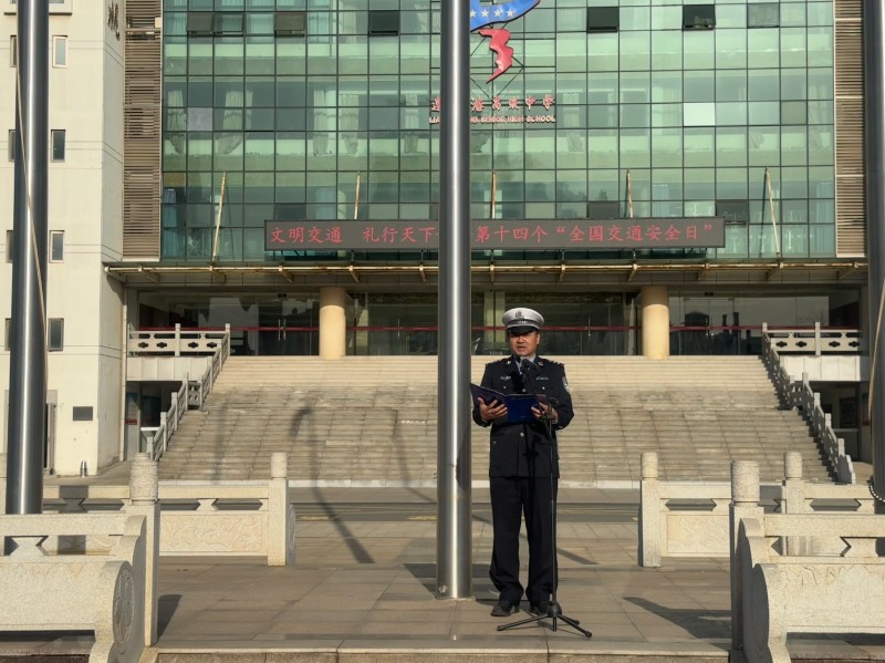 大家早上好!我是连云港市公安局交通警察支队开发区大队的李雪涛队长。今天,能站在这面鲜艳的五星红旗下,和朝气蓬勃的高中生们聊聊交通安全这个重要话题,我深感责任重大。12 月 2 日,我们即将迎来第十四个全国交通安全日,今年的主题是“文明交通,礼行天下”。这个主题不仅是一句口号,更是对每一位交通参与者的基本要求,尤其需要正值青春的你们牢记于心、付诸行动。