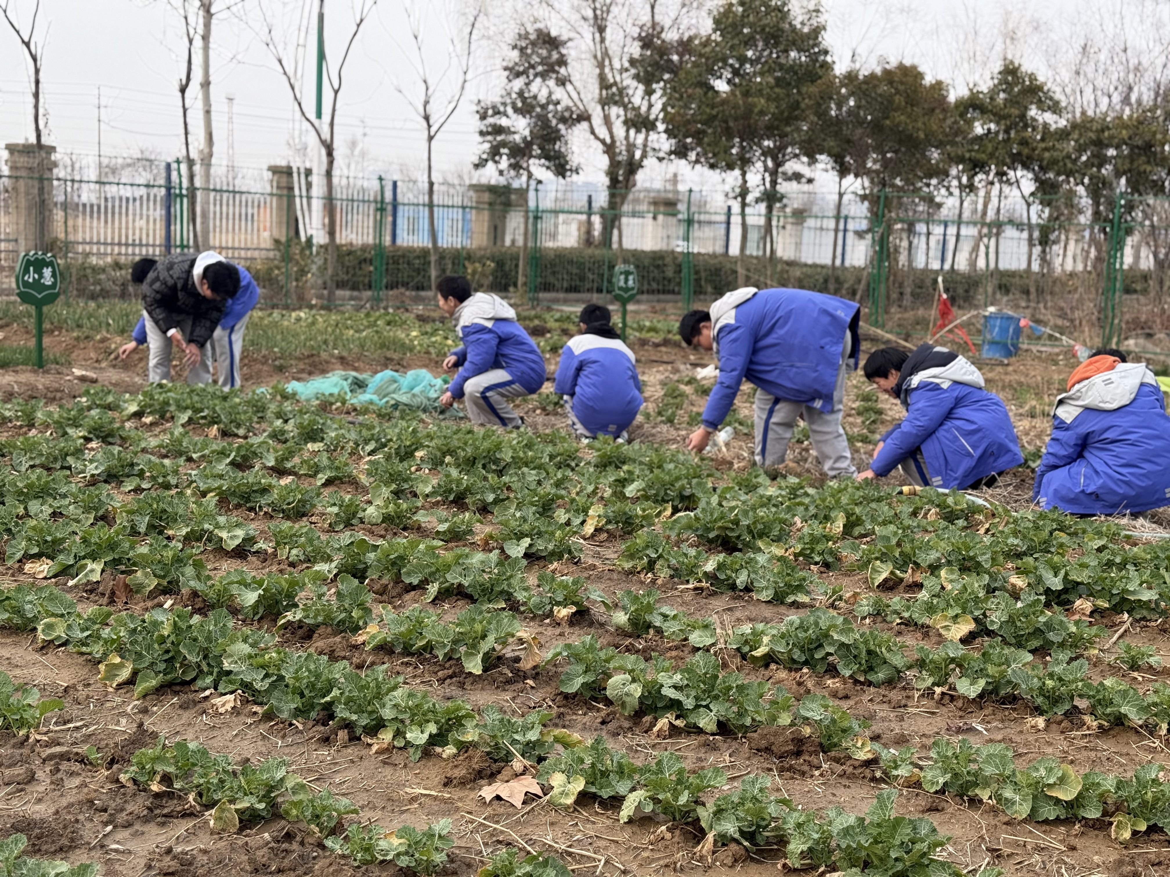 在团委老师们的指导下,高一12班的学生们以小组为单位领取树苗和工具,分工协作、默契配合。挥锹铲土、扶苗填坑、提水浇灌……劳动基地里热火朝天,洋溢着青春的活力与劳动的欢笑。在大家的默契配合下,一棵棵树苗生机勃勃地挺立在宿舍后面的空地上。另外一边的同学们在农田里忙着除草、捡石子,也忙的不亦乐乎。